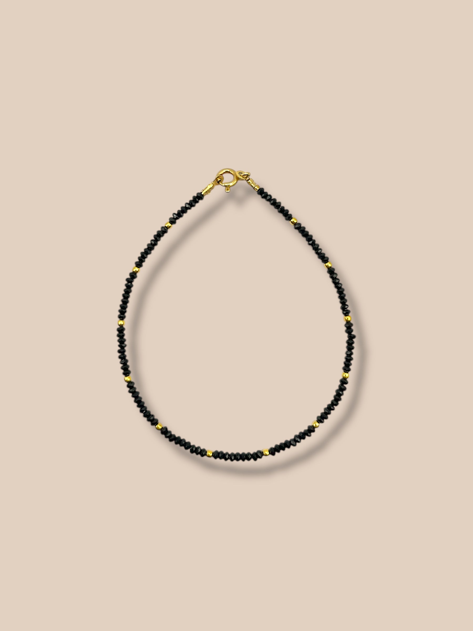 LUNA, elegante e luminoso, è realizzato a mano con rondelle di Spinello nero 2mm tramezzato da pallini in argento 925%. La chiusura è in argento 925%.