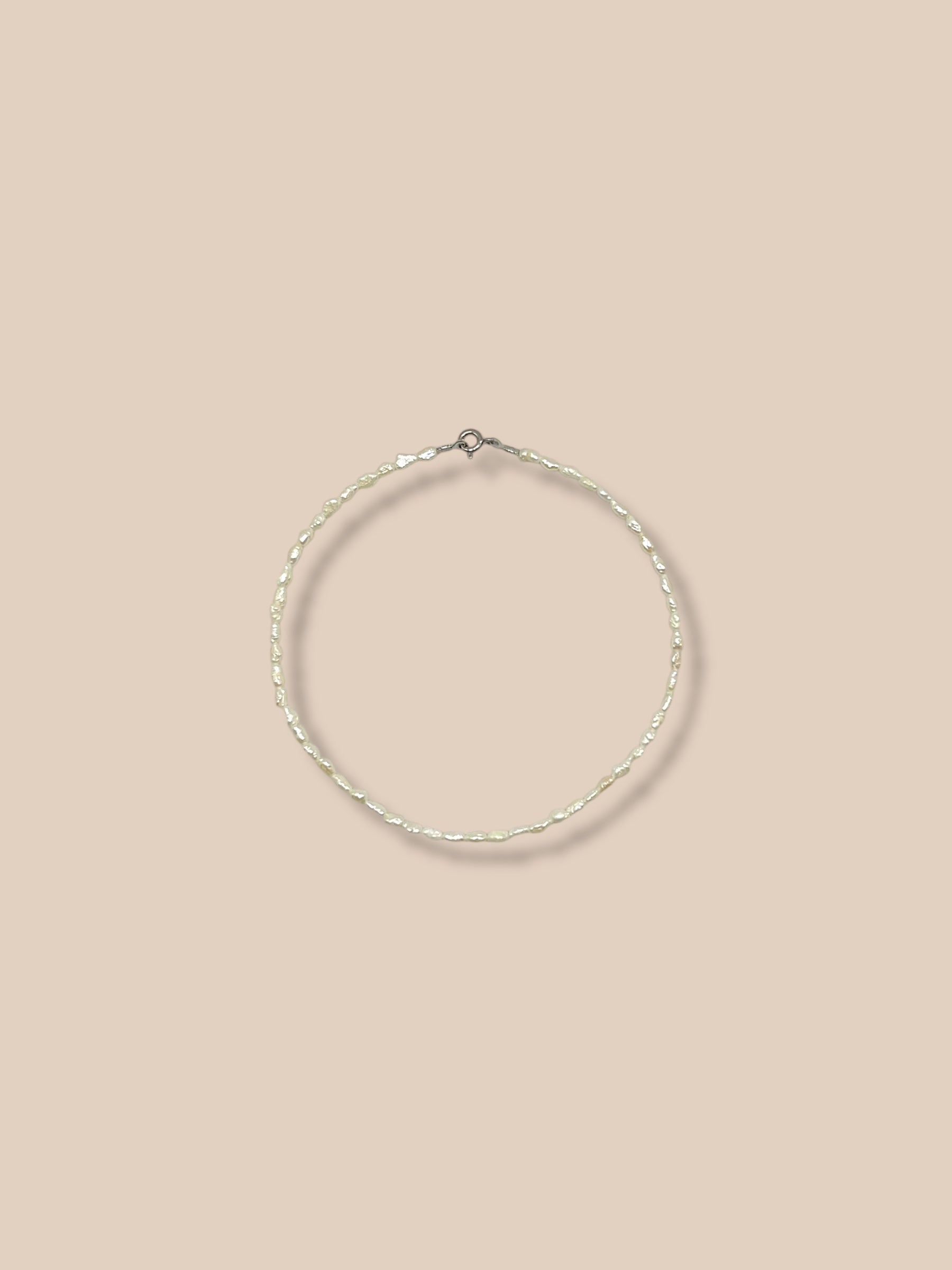 NACRE, realizzata a mano con perle naturali a forma di chicco di riso e chiusura in argento 925%.