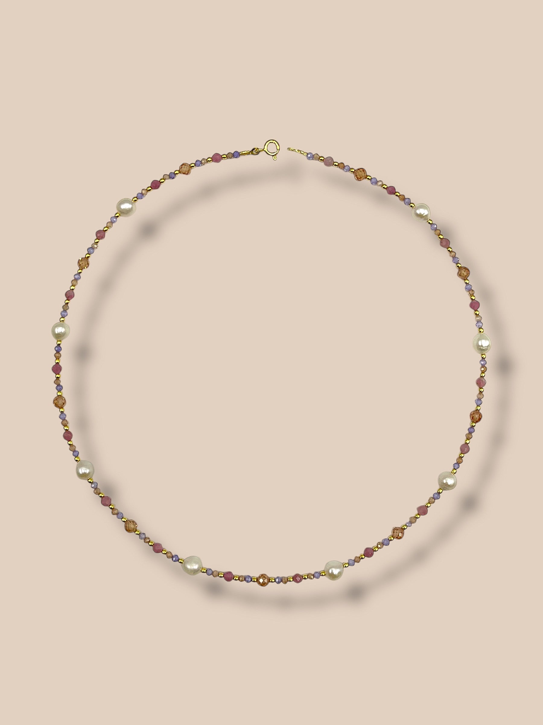 ALBA, realizzata a mano con perle naturali di fiume, tormalina rosa, zirconi e argento 925%, trasmette la freschezza e la leggerezza dei fiori che sbocciano in primavera.